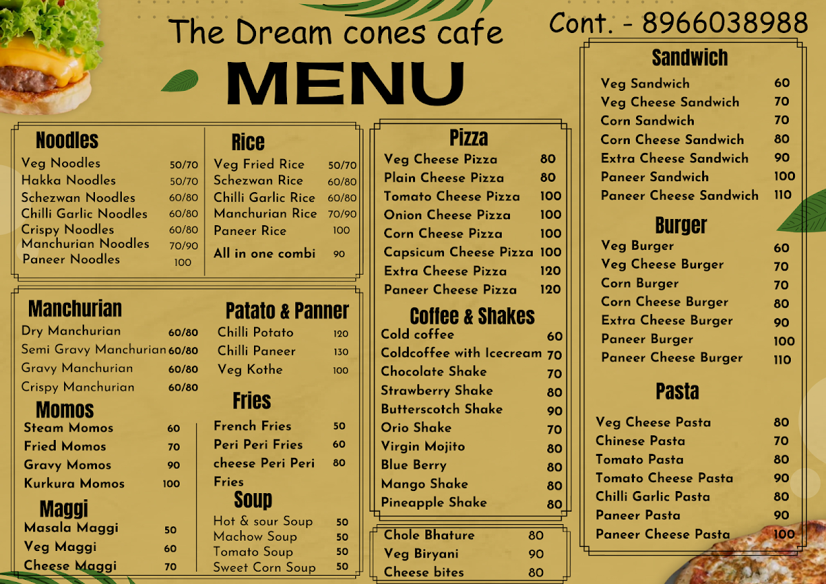 For reservations or inquiries, feel free to call them at +91 89660 38988. The Dream Cones Cafe awaits you!
